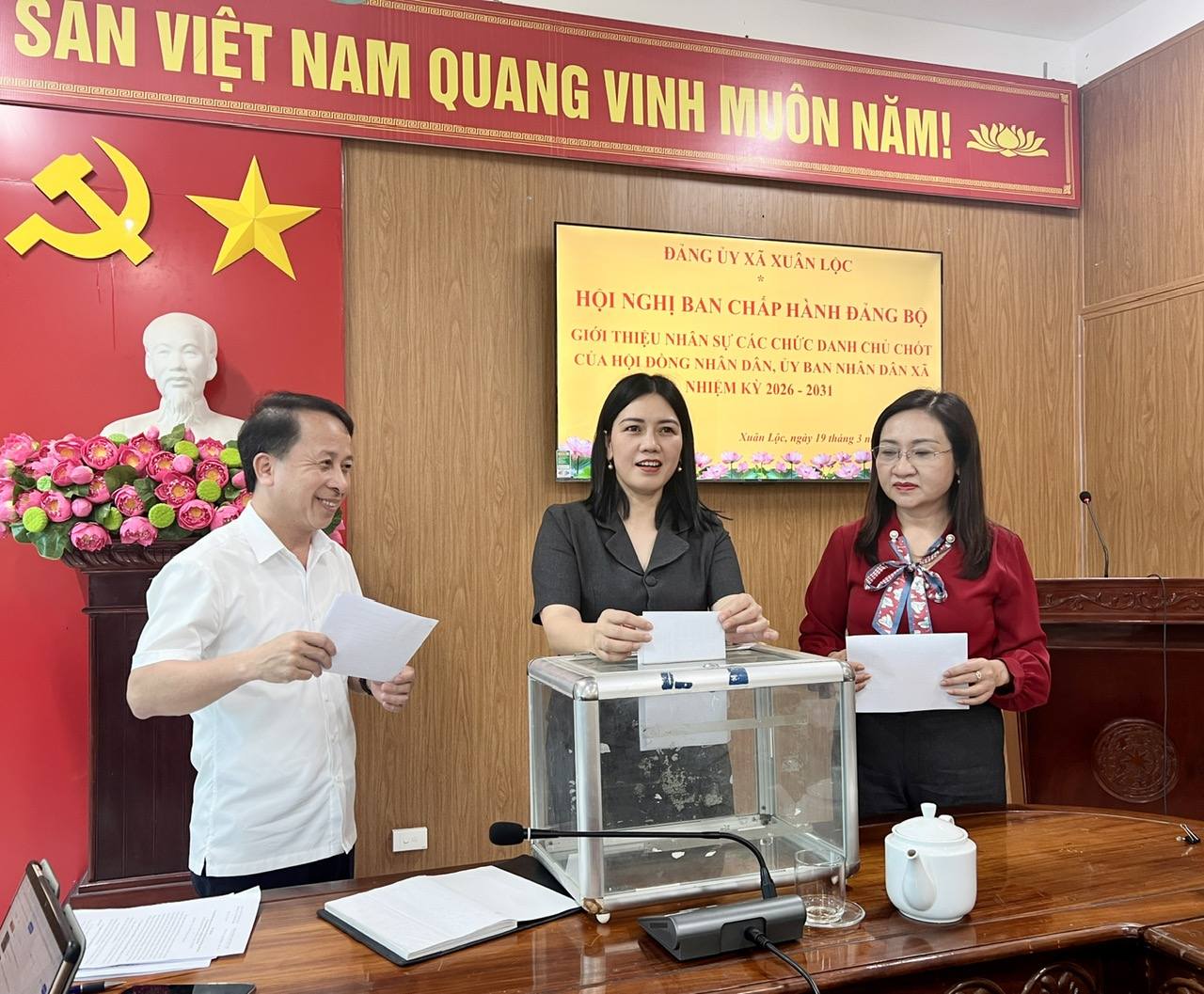 Chiều ngày 19/3, Đảng ủy xã Xuân Lộc tổ chức chuỗi hội nghị quan trọng nhằm triển khai quy trình công tác cán bộ và giới thiệu nhân sự chủ chốt nhiệm kỳ 2026 – 2031. Hội nghị do đồng chí Bùi Thị Kiều Nhi, Bí thư Đảng ủy xã chủ trì. Tham dự có các đồng chí Thường trực Đảng ủy, Ủy viên Ban Thường vụ Đảng ủy, các đồng chí Ủy viên Ban Chấp hành Đảng bộ xã.